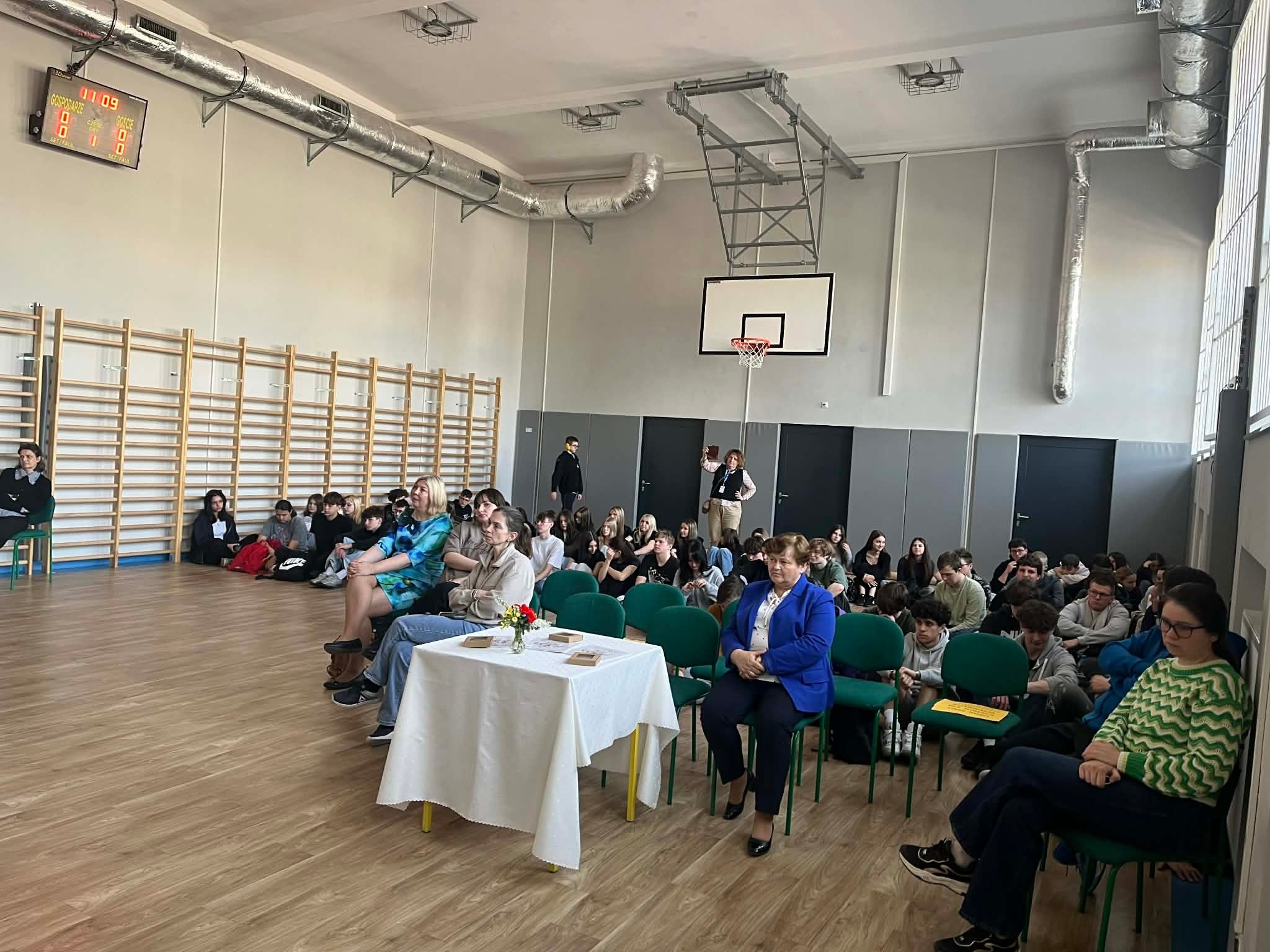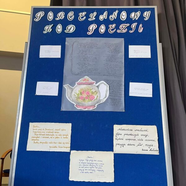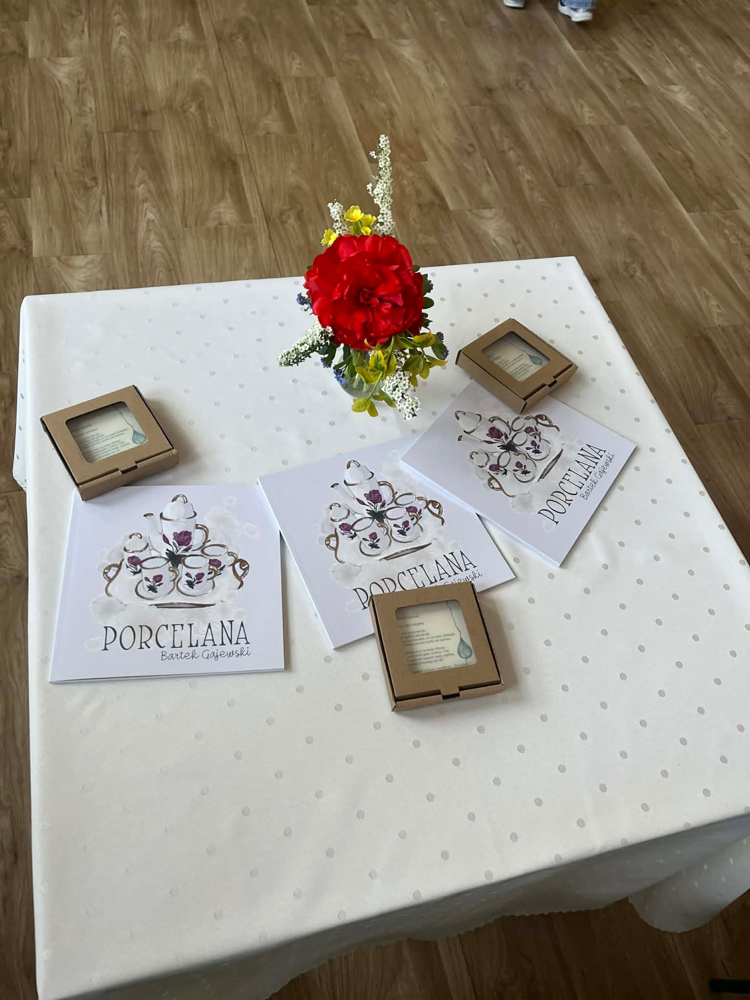 22 kwietnia w naszej szkole odbyło się spotkanie poetyckie poświęcone twórczości Bartosza Gajewskiego – ucznia klasy pierwszej LO. Kilka tygodni wcześniej, dokładnie 9 marca, wydał on swój pierwszy autorski tomik liryki zatytułowany „Porcelana”. Jego utwory są właśnie takie, jak nazwa zbioru: piękne, dopracowane w każdym słowie, a jednocześnie tematycznie mocne, gdyż poruszające zagadnienia ważne dla młodzieży.