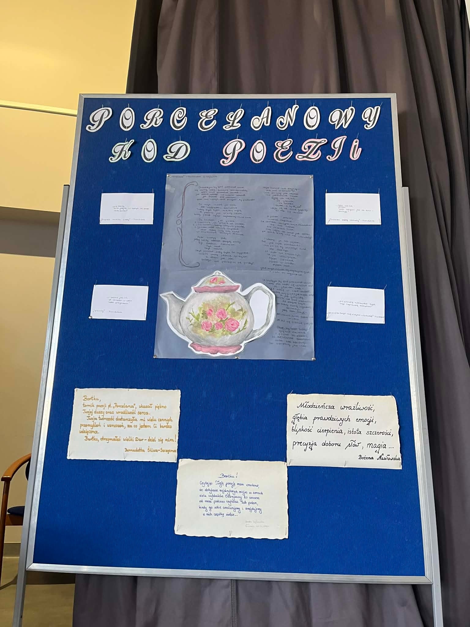 Kilka wybranych wierszy odczytały dziś Panie: Bernadetta Śliwa-Szczęsna, Beata Cegłowska i Bożena Nasiłowska, natomiast koleżanka z klasy Bartka – Małgorzata Piatikow – przeprowadziła z nim krótki wywiad, a nawet test wiedzy z jego własnej twórczości. Mogliśmy też wysłuchać nagranej przez uczęszczającą do tej samej klasy – Zofię Kącką – „Sonaty księżycowej” Ludwiga van Beethovena.