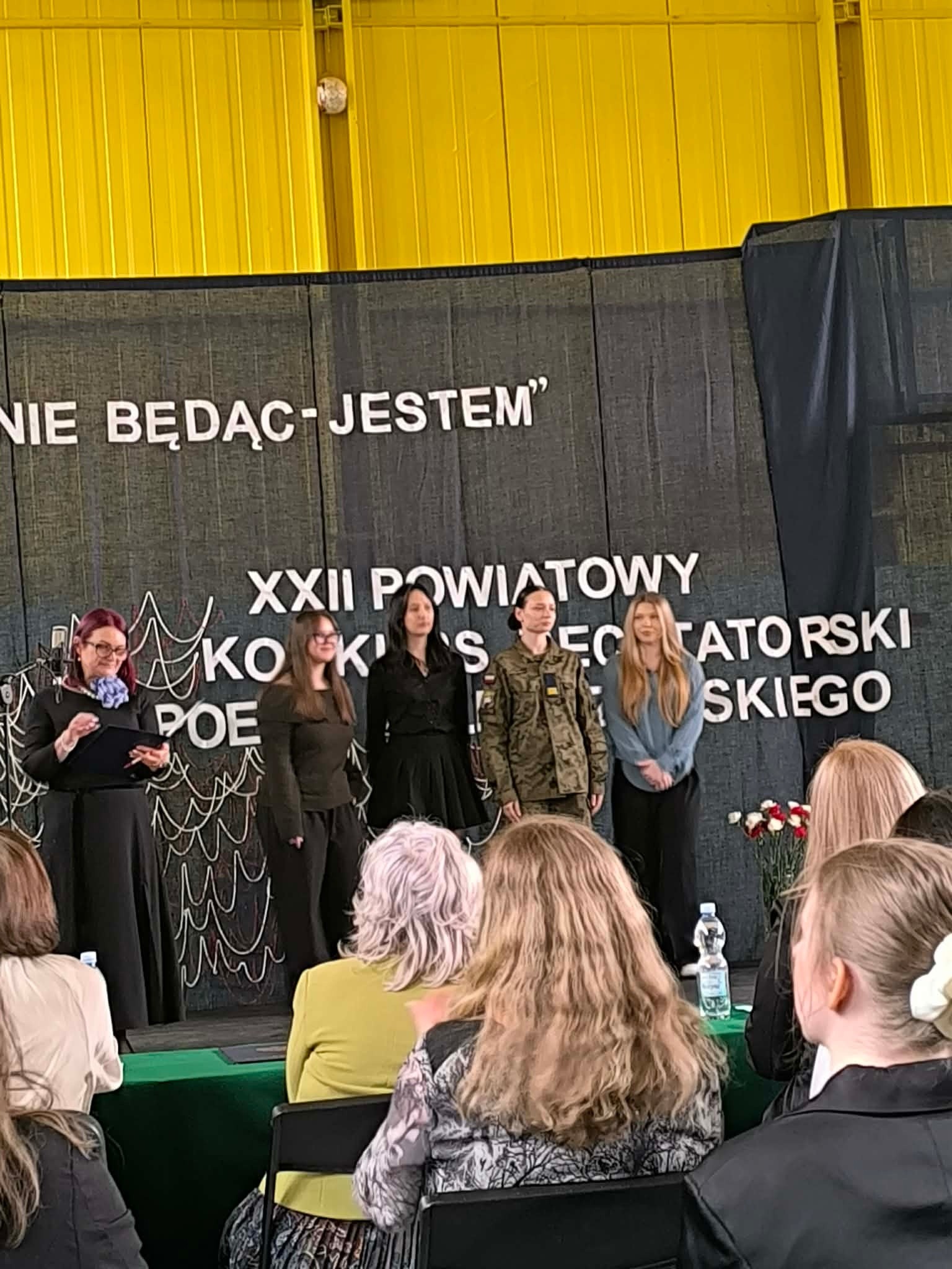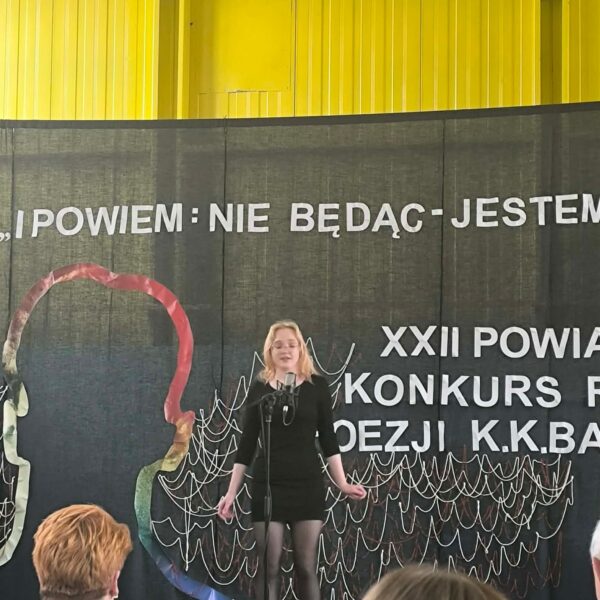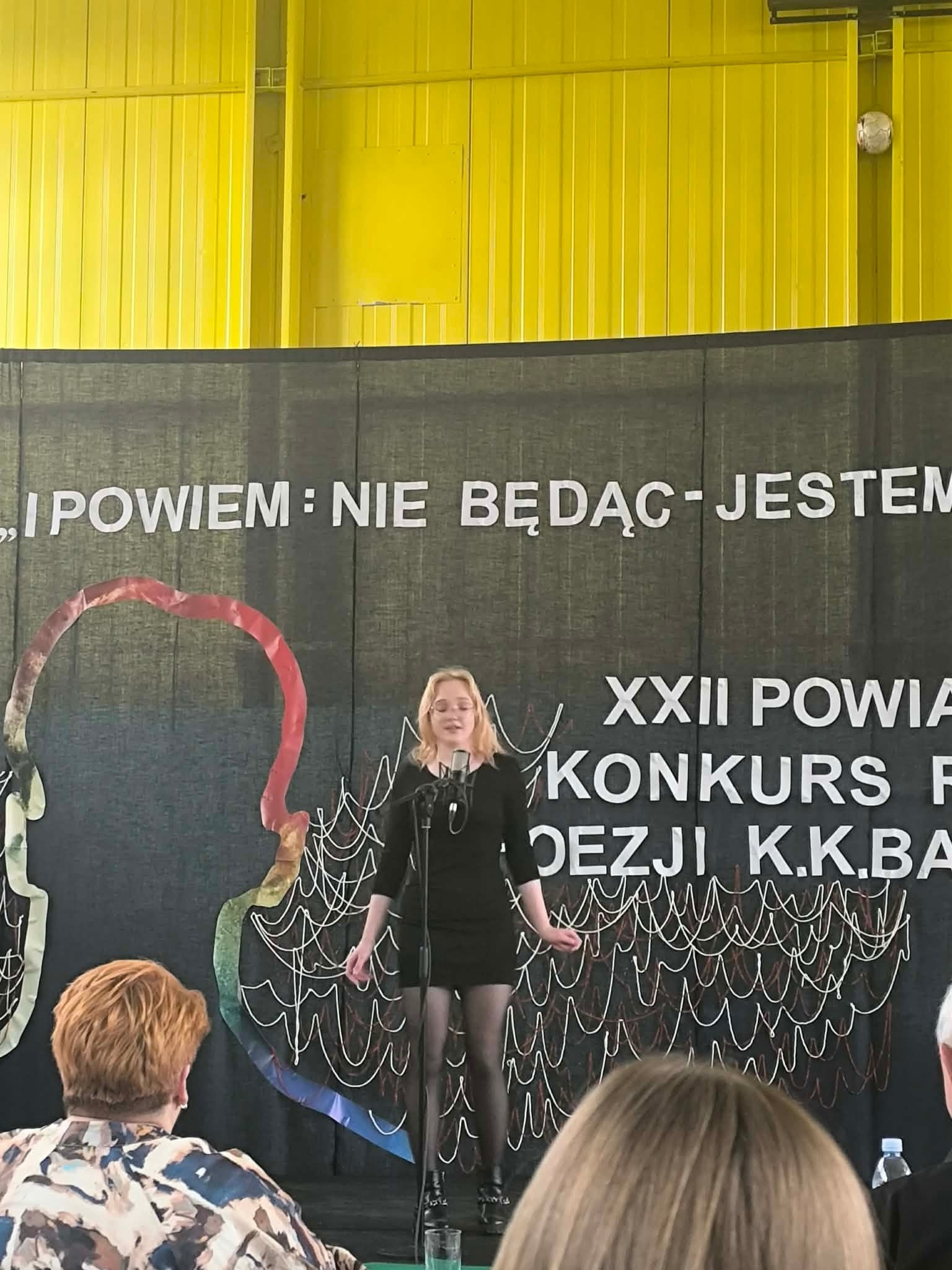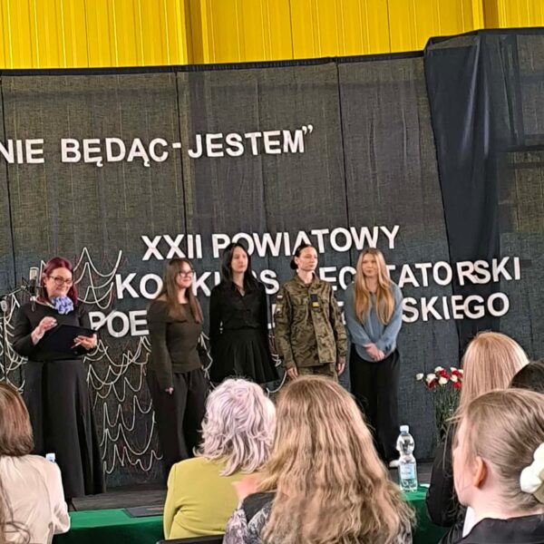 Dnia 25 marca uczniowie: Alicja Augustyniak, Ivanna Pastukh, Adam Konarski, Roksana Orzechowska, Aron Wnorowski, Krzysztof Zdrojewski, Piotr Jacyna i Nicola Łuszczyńska godnie reprezentowali społeczność szkolną podczas XXII powiatowego konkursu recytacji poezji Krzysztofa Kamila Baczyńskiego. Aron Wnorowski zajął II miejce w kategorii: prezentacja multimedialna, Krzysztof Zdrojewski zajął III miejsce w kategorii: wiedza o autorze, a Alicja Augustyniak otrzymała wyróżnienie w kategorii: wizja plastyczna. Wszystkim uczestnikom gratulujemy i życzymy dalszych sukcesów.
